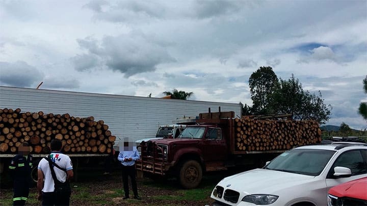 Morelia, Michoacán,.– Como parte de las acciones para erradicar delitos contra la ecología, la Procuraduría General de Justicia del Estado (PGJE) aseguró tres unidades de carga que transportaban madera en la población de Zirahuén, municipio de Salvador Escalante; hay cuatro detenidos.