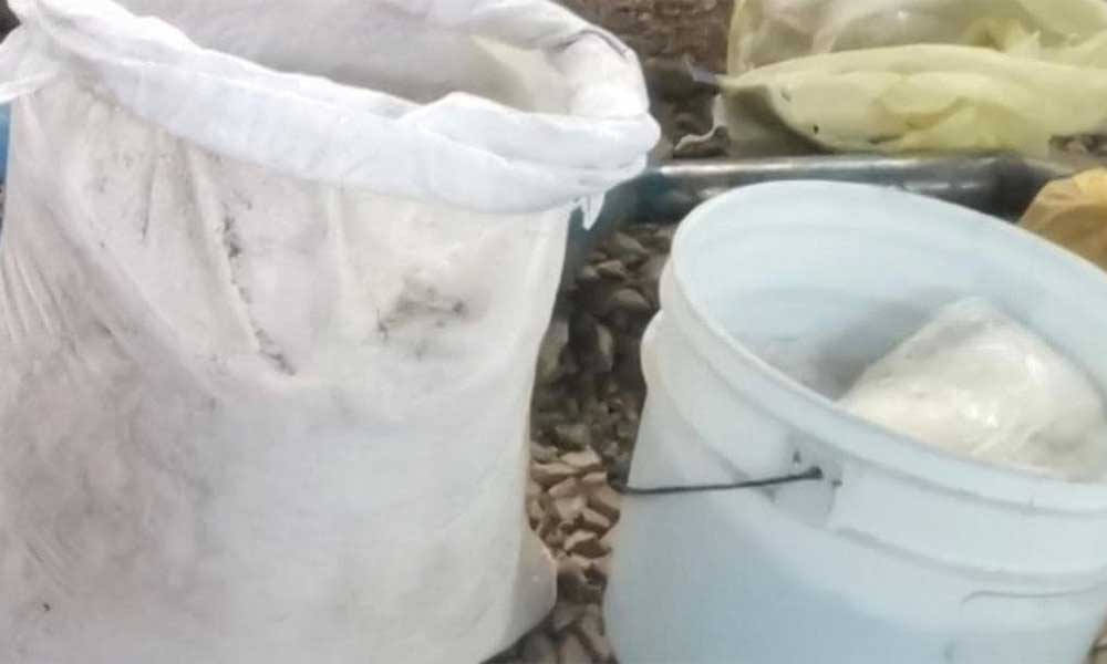 También, en el lugar donde se encontró el cristal, se ubicó un reactor, una olla de presión, dos tambos de metal, una garrafa de 20 litros con líquido en su interior, dos cilindros de gas, tres mascarillas de laboratorio, una bomba de agua y quemadores, instrumentos utilizados presuntamente para la elaboración de droga sintética.