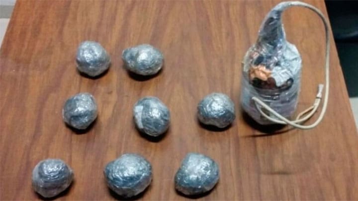 Al realizar una inspección de rutina a los presuntos implicados se les localizó y decomisó un artefacto en forma de botella y ocho más en forma de esfera -todos de fabricación casera- mismos que fueron puestos a disposición de la autoridad competente.