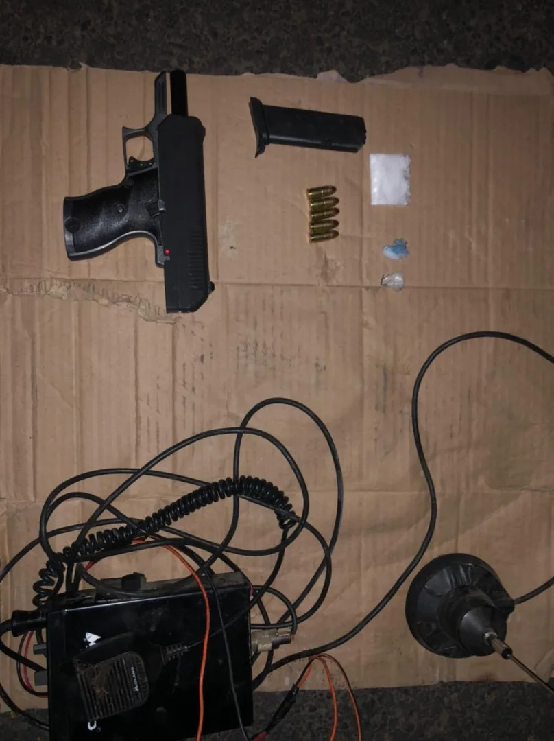 Una vez llevadas a cabo las labores de inspección correspondientes, los elementos aseguraron una pistola calibre .9mm., un cargador, cinco cartuchos útiles, así como tres envoltorios con la citada droga y un equipo de radio comunicación.