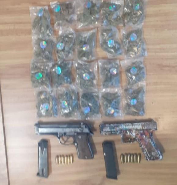 El hecho se registró en la comunidad Aquiles Serdán de este municipio, donde los agentes de la Policía Michoacán efectuaban patrullajes de vigilancia, y sobre la calle Avenida del Trabajo ubicaron una motocicleta marca Italika, en la cual se trasladaban dos personas, mismas que al notar la presencia de la autoridad, intentaron huir y realizaron disparos contra los elementos sin que resultaran lesionados. Al darles alcance, el personal policial localizó entre las pertenencias de Ulises G., y Jesús M., dos armas de fuego calibres .9 mm., y .45 mm., respectivamente, dos cargadores, 12 cartuchos útiles y 20 envoltorios con la mencionada droga.Derivado de ello, los ahora detenidos y lo asegurado, fueron puestos a disposición de la autoridad competente, a efecto de que se resuelva su situación jurídica conforme marca la ley.La SSP no da ni un paso atrás en el combate a todo acto que vulnere la seguridad de la población michoacana.