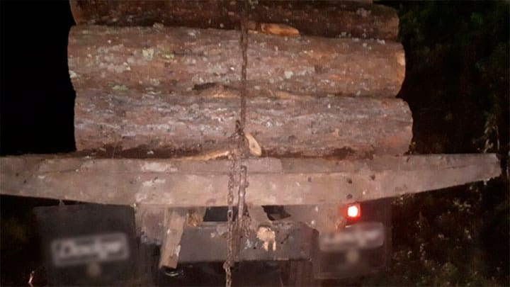 Elementos de la Policía Michoacán realizaron un recorrido de prevención y vigilancia sobre la brecha que conecta a las comunidades Los Aguacates y La Campana, donde se percataron de un camión tipo rabón, que en su interior transportaba rollos de madera de pino.