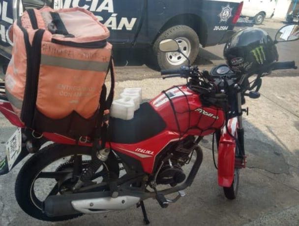 La acción operativa se registró sobre la calle Vasco de Quiroga, lugar donde agentes de la Policía Michoacán detuvieron a Josué G., quien viajaba a bordo de una motocicleta de marca Italika.