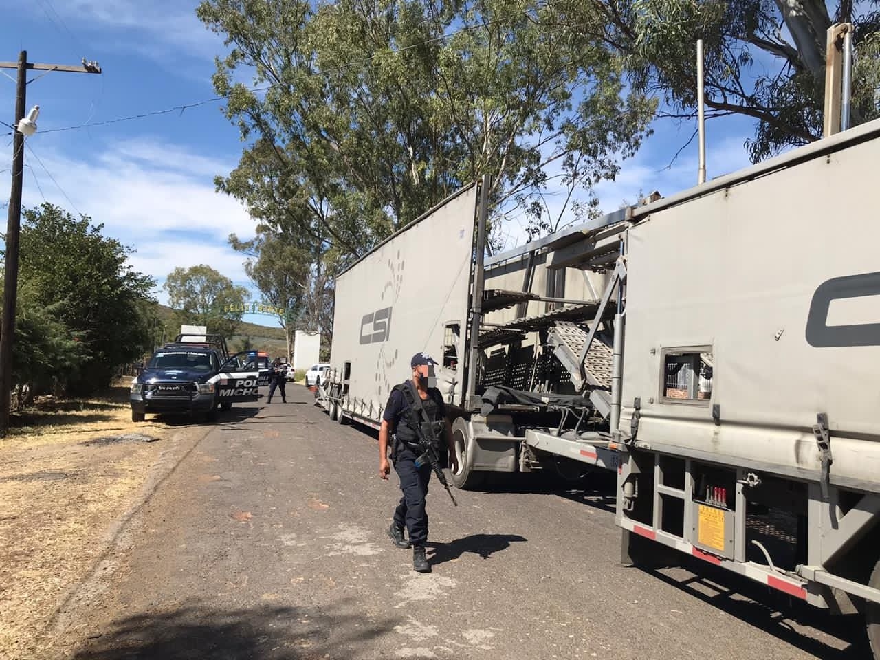 La acción operativa se registró en la localidad de Changuitiro, lugar donde agentes de la Policía Michoacán aseguraron a Daniel D., quien se encontraba en posesión de los automotores de las marcas Kenworth, y Toyota, respectivamente.