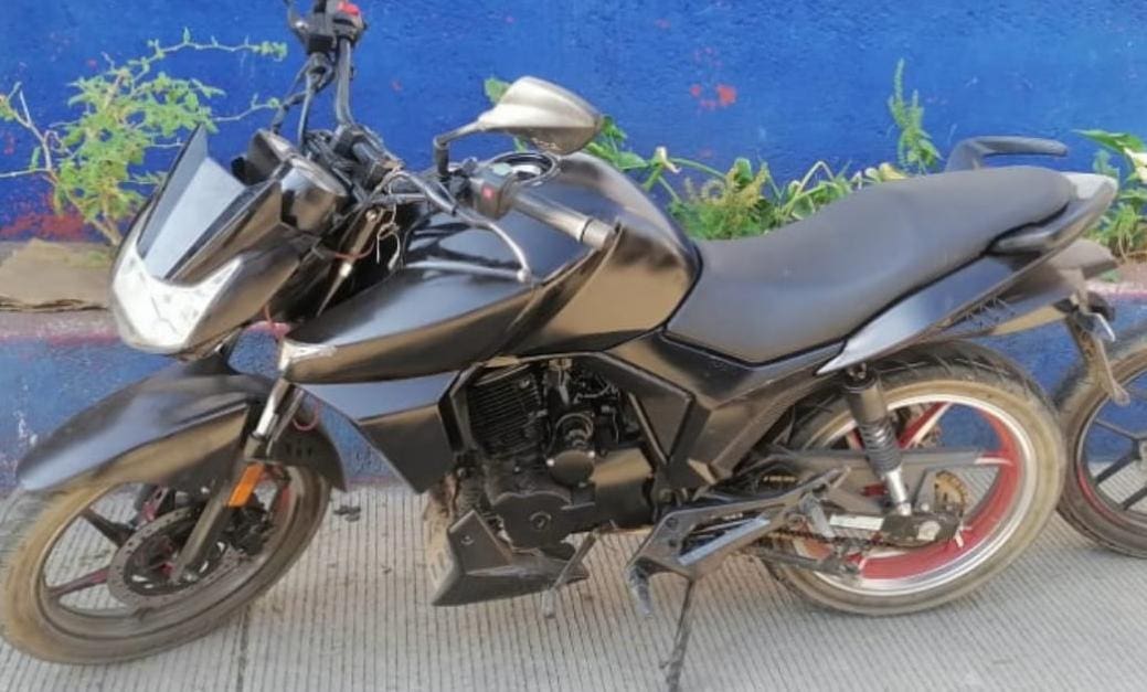 Pátzcuaro, Michoacán, a 11 de marzo de 2021.- En patrullajes de vigilancia para la disuasión del delito, elementos de la Secretaría de Seguridad Pública (SSP), aseguraron a una persona en posesión de un arma de fabricación casera, envoltorios con sustancia granulosa al parecer metanfetamina, y una motocicleta con reporte de robo.
