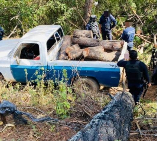 Asegura SSP dos vehículos cargados con más de 1.5 metros cúbicos de madera ilegal