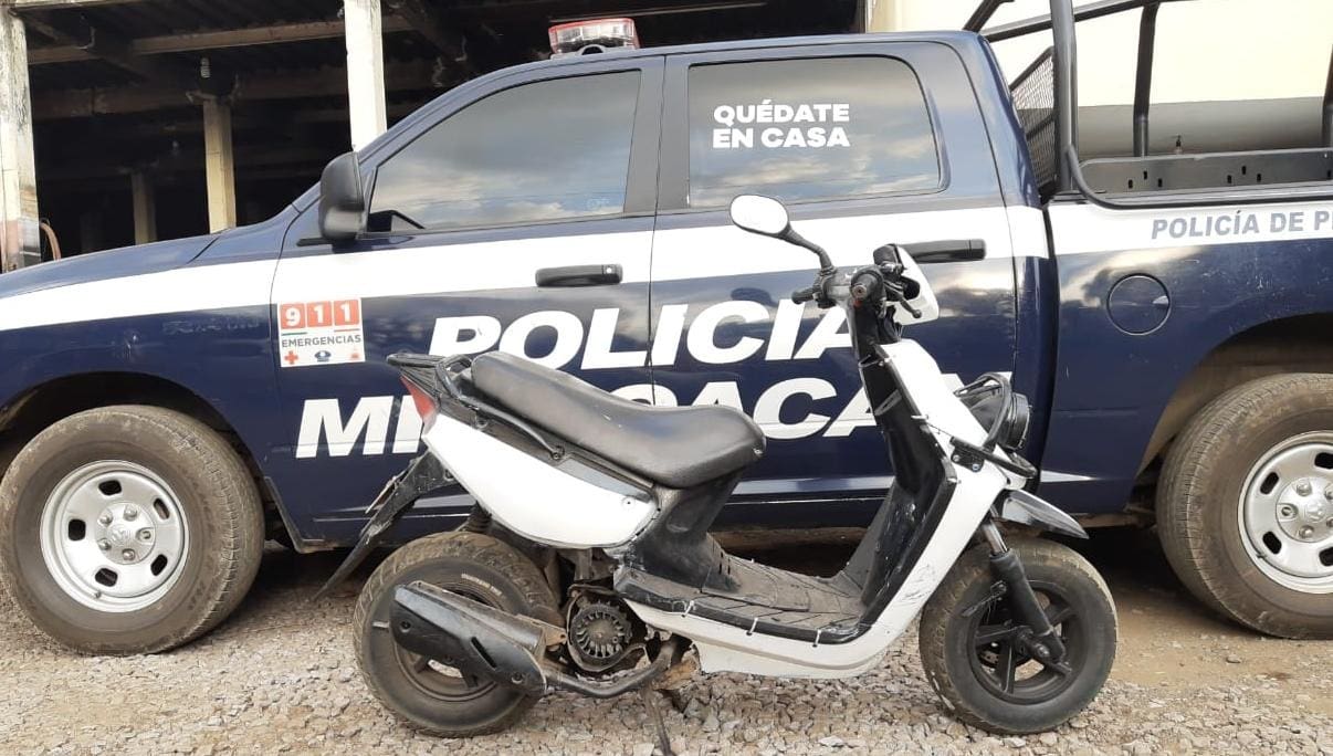 Uruapan, Michoacán, a 28 de octubre de 2020.- Durante tareas de vigilancia, elementos de la Secretaría de Seguridad Pública (SSP), aseguraron una motocicleta con alteraciones en sus medios de identificación; hecho efectuado en la colonia Obrera Popular, de está ciudad.