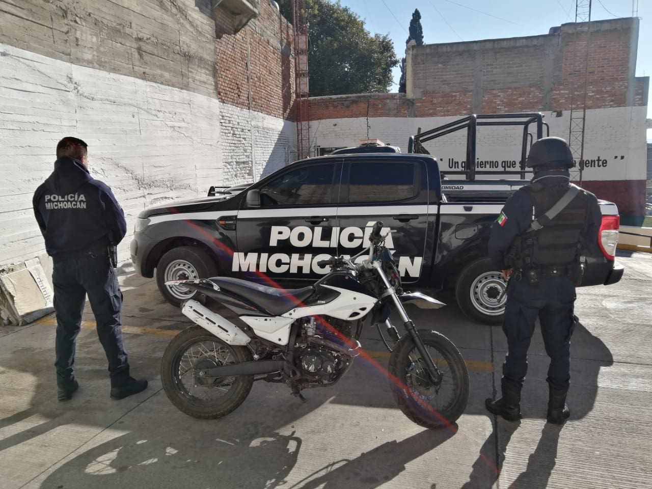 El hecho ocurrió sobre un camino que conduce a la colonia Wenceslao Victoria, donde los agentes de la Policía Michoacán ubicaron a un hombre que tripulaba un vehículo de la marca Italika, a exceso de velocidad, por lo que se le marcó el alto, mismo que hizo caso omiso a la indicación de la autoridad, iniciándose una persecución.