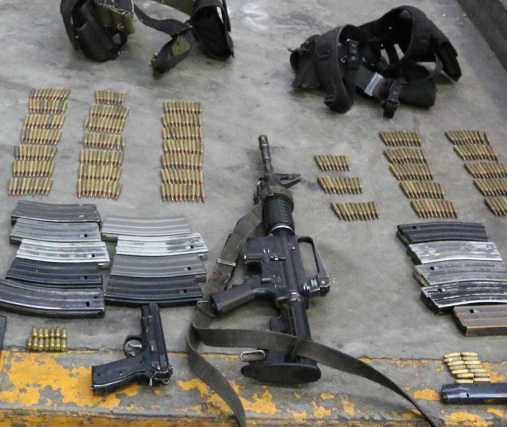 En el interior de los automóviles aseguraron cocaína, cristal y marihuana, distribuidas en 64 envoltorios de plástico, un arma de fuego tipo fusil AR-15 con un cargador y 20 cartuchos útiles calibre .223 milímetros, 20 cargadores para fusil AK-47 con 114 cartuchos útiles calibre 7.62X39 milímetros, un cargador para Fusil Barret Calibre .50 milímetros para perforar blindaje, cuatro cargadores para fusil G-3 con nueve cartuchos útiles al calibre 7.62X51 milímetros, dos cargadores para arma de fuego calibre .9 milímetros con seis cartuchos útiles y nueve chalecos tácticos.