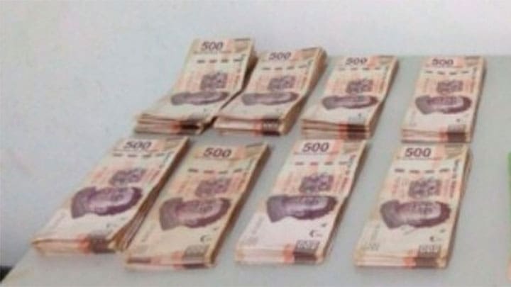 Al revisar el interior del vehículo, las autoridades localizaron la cantidad de 104 mil 500 pesos en efectivo; al cuestionar a los tripulantes, de nombres Pedro T., y Jesús G., el origen del dinero, no pudieron acreditar su legal procedencia.
