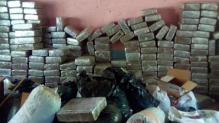 Al inspeccionar el lugar encontraron 305 paquetes prensados, 27 costales y 18 bolsas negras con hierba verde con las características propias de la marihuana, por lo que fue asegurada para ser puesta a disposición de la autoridad competente.