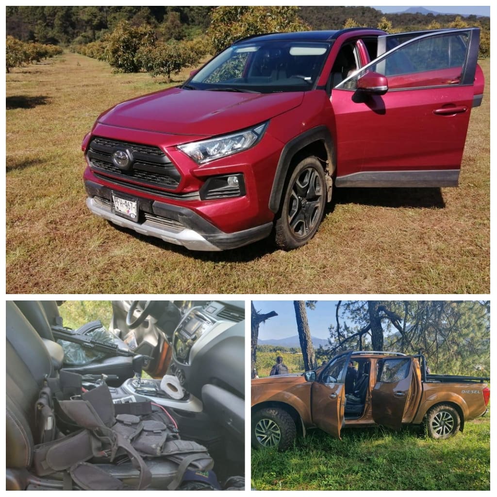 De igual forma, se aseguraron tres vehículos marcas Nissan, Toyota, e Italika, respectivamente; dos armas de fuego calibre 5.56, una calibre 7.62; así como 30 cargadores y 686 cartuchos útiles.