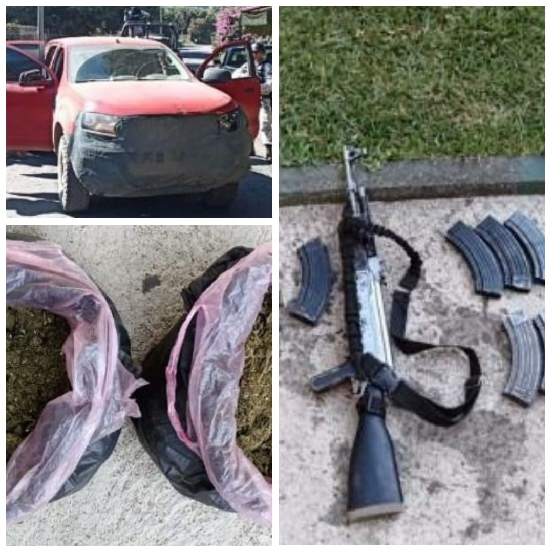 Aseguran SSP y GN a dos en posesión de armas, 198 cartuchos y un kilo de droga