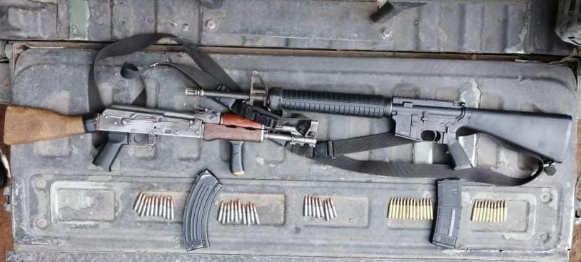 Parácuaro, Michoacán, a 20 de noviembre de 2019.- En seguimiento a la estrategia para combatir actos constitutivos de delito, personal de las secretarías de Seguridad Pública (SSP) y de la Defensa Nacional (SEDENA), lograron el aseguramiento de armas de fuego, cargadores, cartuchos útiles y un vehículo con reporte de robo, en las inmediaciones de la localidad de El Tepehuaje, de este municipio.