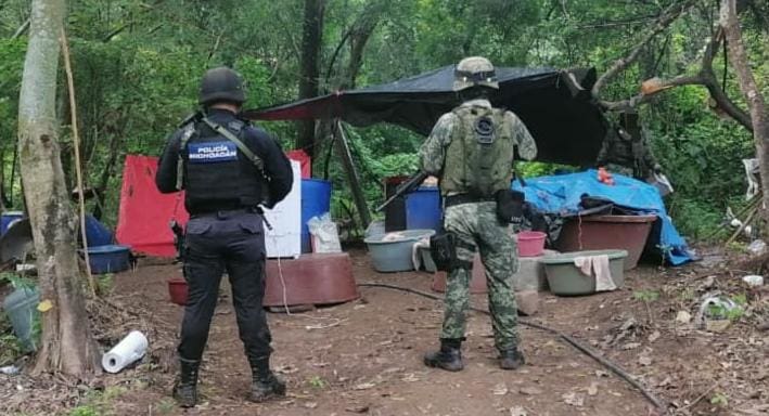 Aseguran SSP y Sedena, laboratorio para la elaboración de droga sintética en Carácuaro