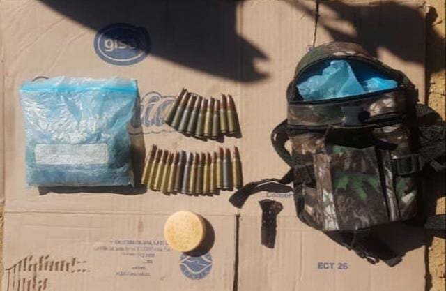 Asimismo, fueron ubicados 24 cartuchos calibre .223 y 7.62X39 mm., respectivamente, así como un envoltorio con aproximadamente 50 gramos de la citada droga, los cuales fueron puestos a disposición de la autoridad competente, a efecto de llevar a cabo las diligencias pertinentes.