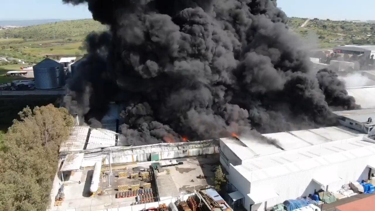 Debido a la naturaleza de los productos que ahí se fabrican y a la diversidad de químicos propios de esa industria, las llamas han alcanzado alturas importantes y, por consiguiente, las columnas de humo son densas y prolongadas.