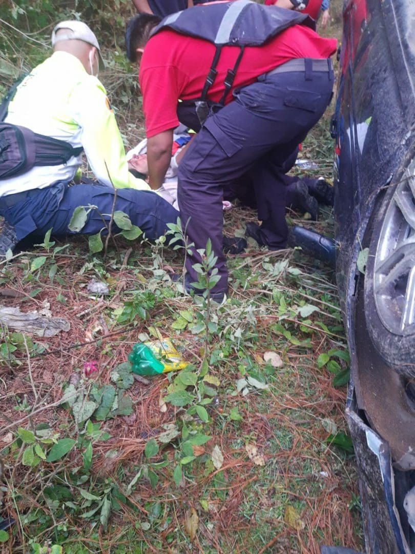 Atienden bomberos de Zitácuaro a dos personas lesionadas por percance vehícular en El Jacal, Estado de México