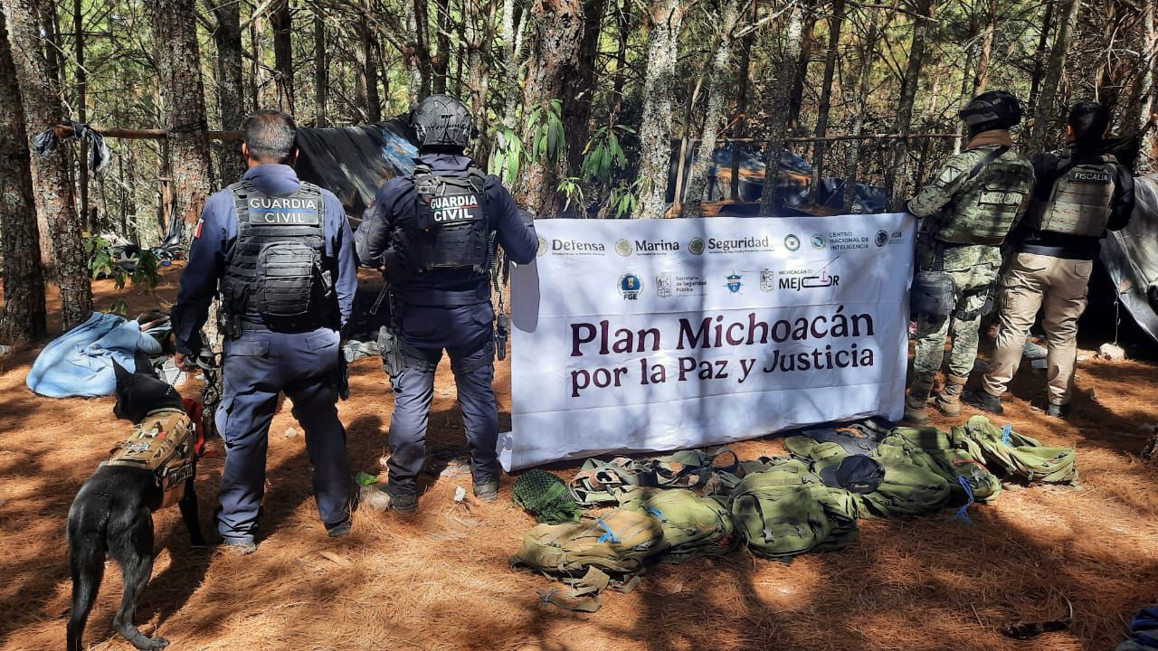 QUERÉNDARO, MICHOACÁN – Elementos de la Secretaría de Seguridad Pública (SSP), en coordinación con la Secretaría de la Defensa Nacional (Defensa) y la Fiscalía General del Estado (FGE), localizaron e inhabilitaron un asentamiento provisional en la zona serrana de este municipio el sábado 28 de febrero de 2026.
