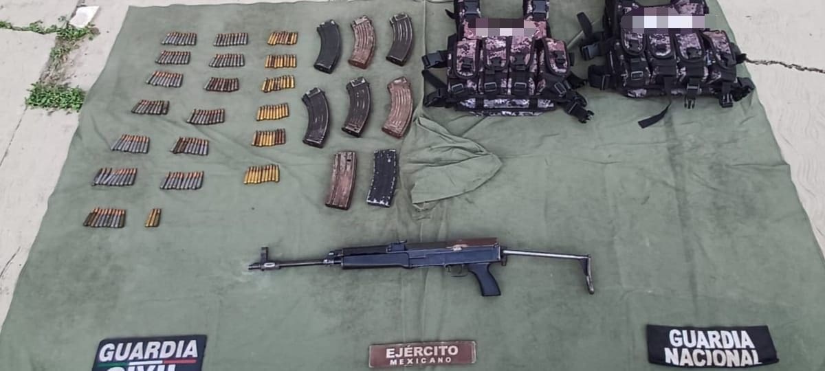Sobre el presunto objetivo delincuencial capturado, esto fue en una brecha próxima a “La Ruana”, en dicha acción los elementos policiales y miliares aseguraron un arma larga, ocho cargadores y 193 cartuchos útiles para arma de fuego de alto poder; diverso equipo táctico, dos motocicletas, una de ellas con reporte de robo, y dos camionetas, una de las cuales es robada. Todo ello fue puesto a disposición de las autoridades investigadoras respectivas.