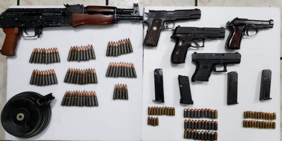 En la revisión de las unidades, se aseguraron cuatro armas cortas: dos calibre .45mm, una .9mm, y otra .380; además de un rifle AK47, 143 municiones y cinco cargadores, uno de ellos de disco, para el arma larga.