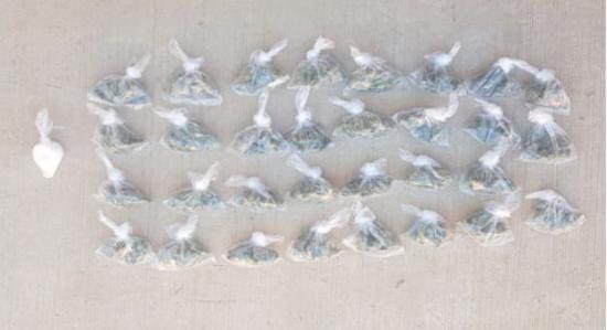 Durante la inspección de personas y unidad, los oficiales encontraron 31 envoltorios con vegetal verde, con las características propias de la marihuana, y uno más con metanfetamina.