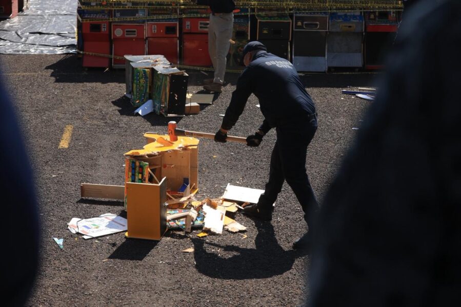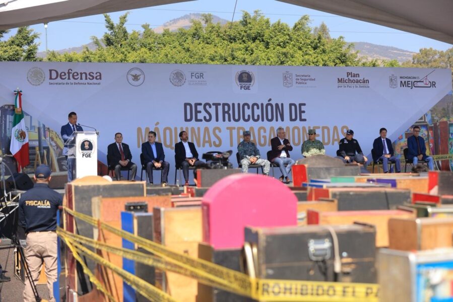 La Fiscalía General del Estado de Michoacán (FGE) reportó la destrucción de 803 máquinas tragamonedas que habían sido aseguradas en diversos operativos realizados en la entidad. La medida se ejecutó en coordinación con el Gobierno del Estado, la Secretaría de la Defensa Nacional, la Secretaría de Marina, la Guardia Nacional y la Secretaría de Seguridad Pública estatal.