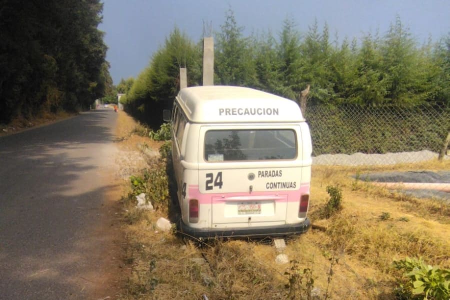Zitácuaro, Michoacán, 05 de mayo de 2023. Un accidente vehicular se registró la tarde de este viernes en la Mesa de Cedano, cerca del lugar conocido como “El Arco”, donde una combi del transporte público se salió de la carretera y derribó una cerca de malla ciclónica.