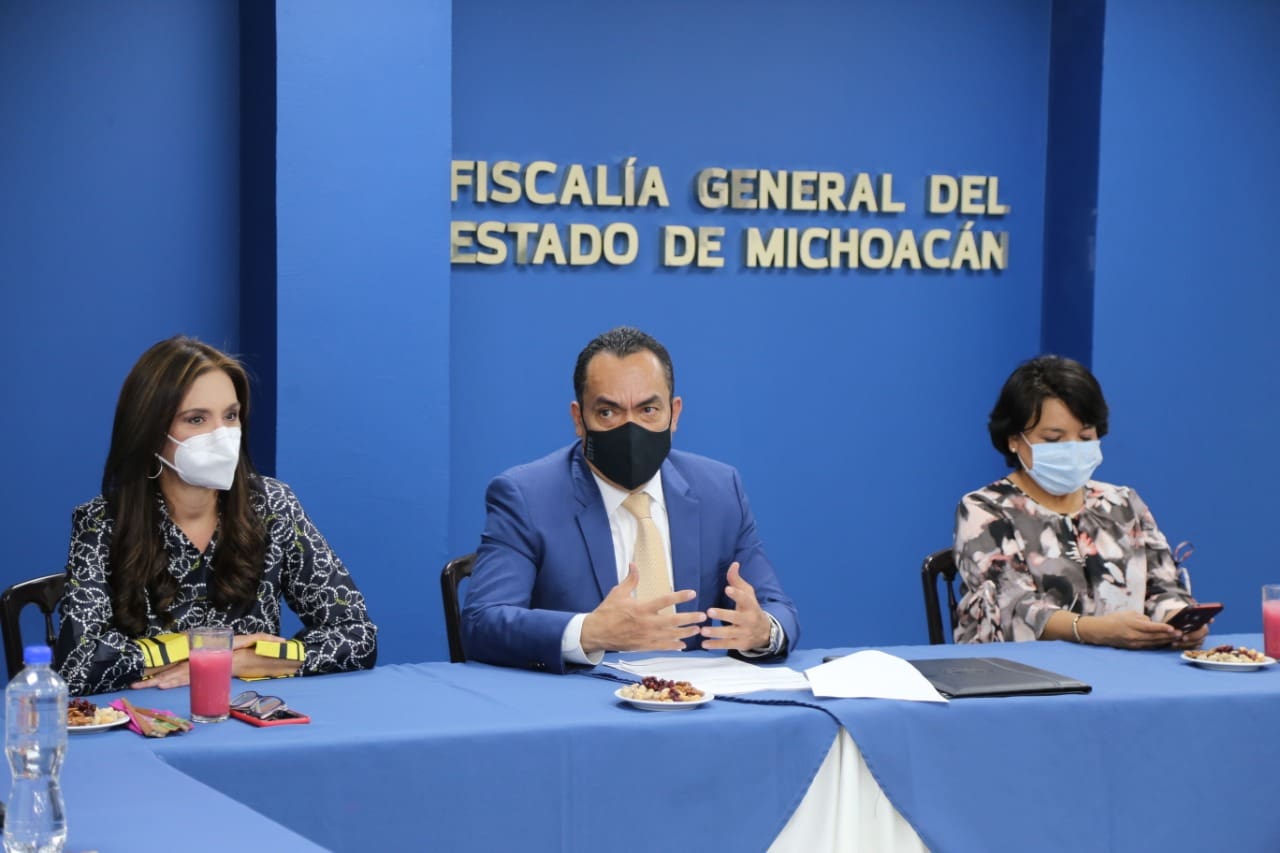 En el marco de un encuentro cordial, realizado bajo las medidas sanitarias para la prevención del COVID-19, el Fiscal General explicó a las asistentes el trabajo que la institución ha venido realizando en materia de combate a los diversos delitos que aquejan en la sociedad, principalmente el de violencia de género, para lo cual destacó que la Fiscalía General del Estado de Michoacán (FGE) cuenta con áreas especializadas para llevar a cabo actuaciones de investigación y persecución de este tipo de delitos.