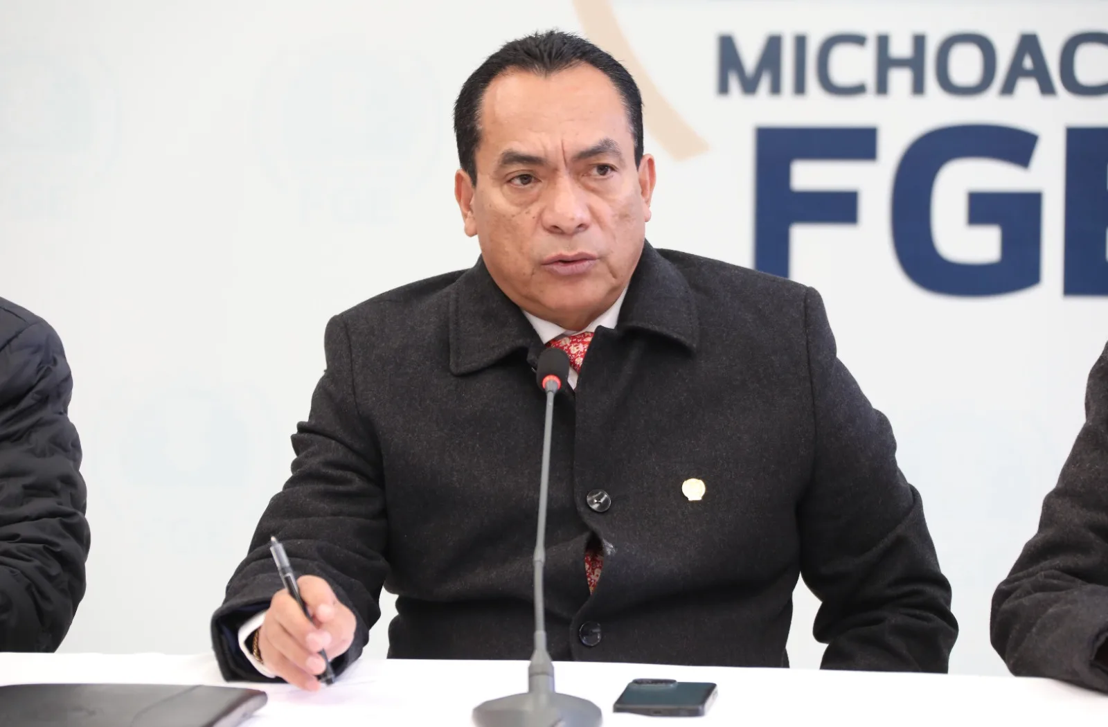 Morelia, Michoacán, a 12 de diciembre de 2023.- La Fiscalía General del Estado de Michoacán se mantiene firme en las acciones de investigación y persecución de delito con personal cada vez mejor capacitado y con el fortalecimiento de la infraestructura, sostuvo este día el titular de la FGE, Adrián López Solís, durante un encuentro con medios de comunicación.