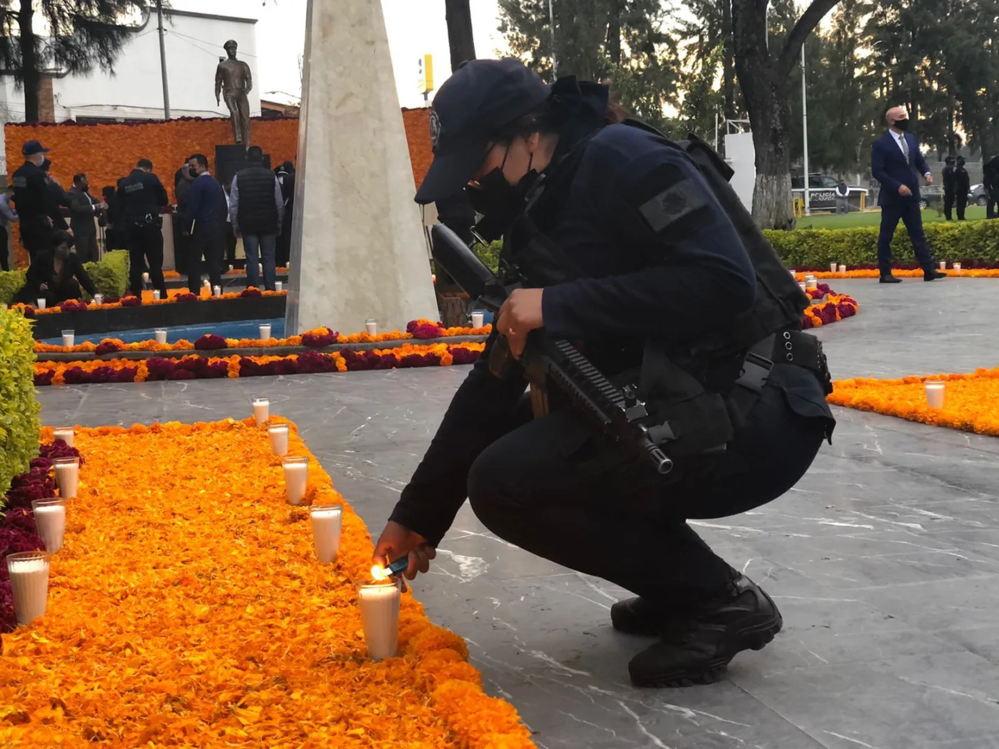 De esta manera, a través de esta colorida ofrenda, conformada por 500 veladoras, de las cuales 199 pertenecen a los elementos fallecidos, tapetes coloridos, pero sobre todo con cariño y admiración, la SSP brinda una muestra de respeto a aquellos que nos antecedieron y dieron su vida en el cumplimiento del deber.