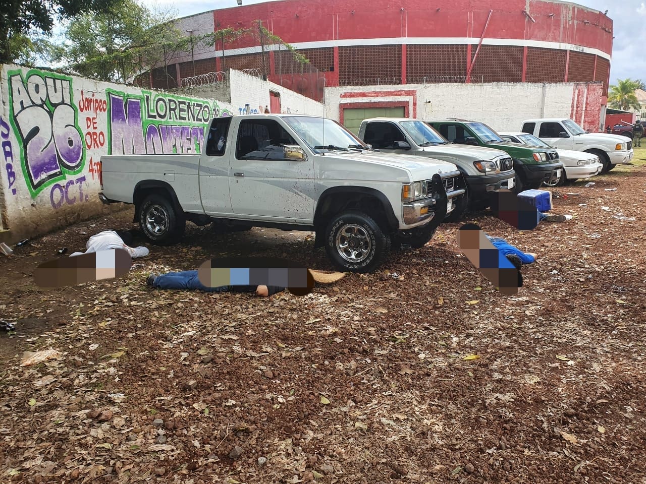 Personal del Equipo Multidisciplinario de la Fiscalía Regional, acudió a un tianguis de autos que se instala en la Plaza de Toros “La Macarena”, lugar donde realizó actuaciones con relación al deceso de cinco personas que fueron identificadas como: Ramón V., José Antonio V., (papá e hijo), José Luis S., Alfredo S. y Saúl C., quienes, a primera vista, presentan heridas producidas por proyectil de arma de fuego.