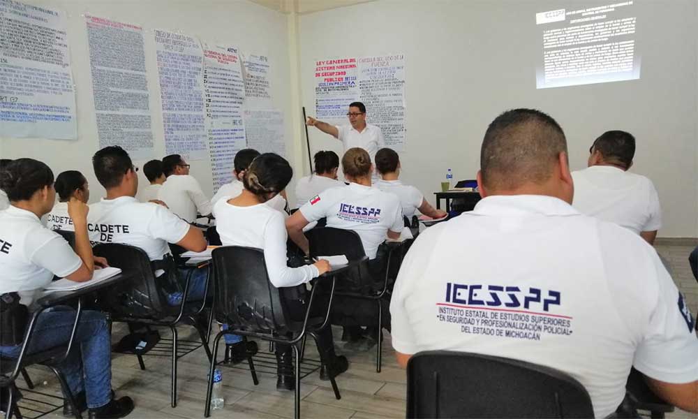 Morelia, Michoacán .- Comprometidos con la educación, profesionalización y especialización de los funcionarios encargados de hacer cumplir la ley, el Instituto Estatal de Estudios Superiores en Seguridad y Profesionalización Policial del Estado de Michoacán (IEESSPP), avanza satisfactoriamente en la formación inicial de 60 elementos en el municipio de Uruapan.