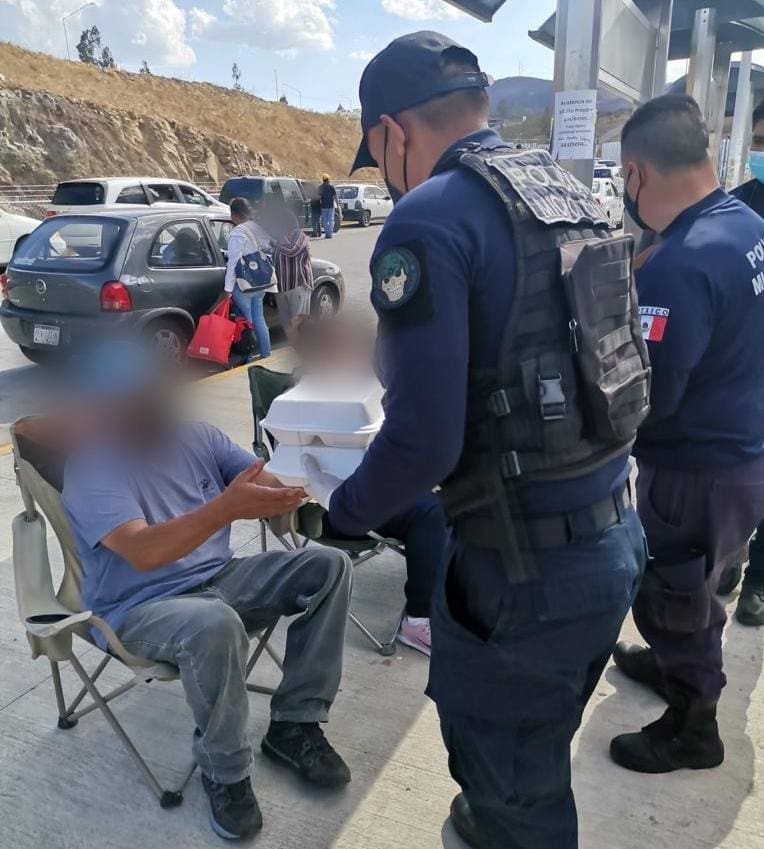 Manteniendo en todo momento las recomendaciones sanitarias para preservar la salud, agentes de la Policía Michoacán acudieron a las inmediaciones del nosocomio, donde realizaron la donación de las raciones alimenticias.