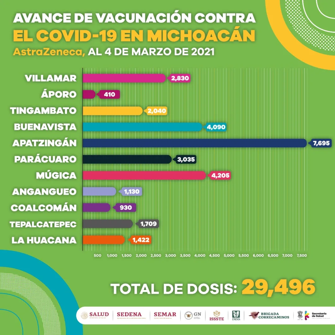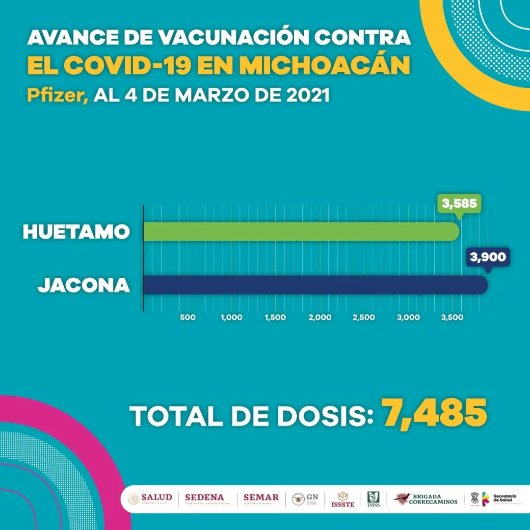 Morelia, Michoacán, a 4 de marzo de 2021.- En 13 municipios del estado se han aplicado 36 mil 981 primeras dosis de la vacuna contra COVID-19 a adultos mayores de 60 años, informó la Secretaría de Salud de Michoacán (SSM).