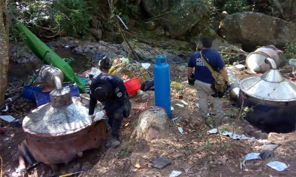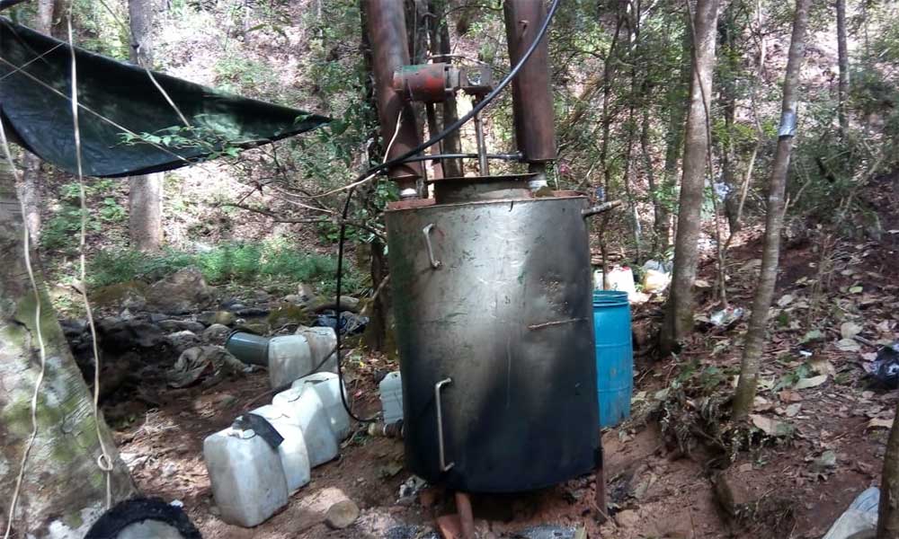 Como resultado de los trabajos de investigación del delito, este día, en las inmediaciones de la localidad de Las Cruces, en dirección a La Yerbabuena en ese municipio, personal de la Dirección de Investigación y Análisis en coordinación con elementos de la Sedena y SSP, aseguraron el sitio utilizado para la elaboración de distintos tipos de droga.