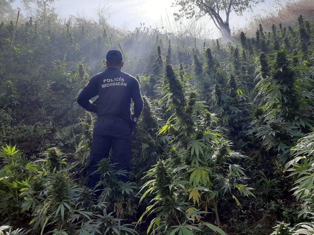 Agentes de la Policía Michoacán realizaban labores preventivas en la demarcación, cuando ubicaron un predio con aproximadamente 12 mil plantas de la citada droga, procediendo a inspeccionar el área.