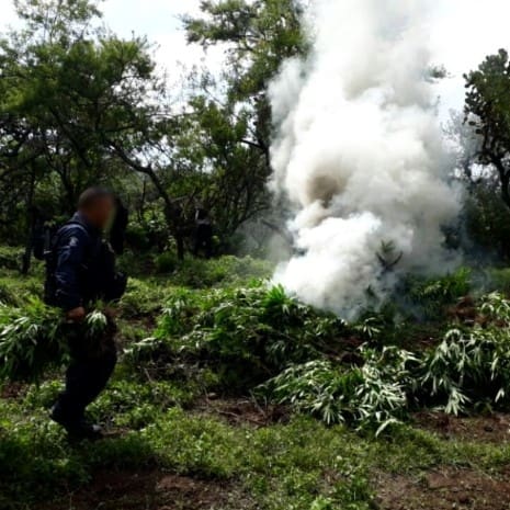 Elementos adscritos a la Secretaría de Seguridad Pública (SSP), realizaban un recorrido sobre el cerro conocido como La Sierra del Sol, cuando localizaron cuatro cultivos ilegales, de 400 metros cuadrados cada uno, con tres mil 780 plantas, las cuales fueron aseguradas e incineradas en el sitio.