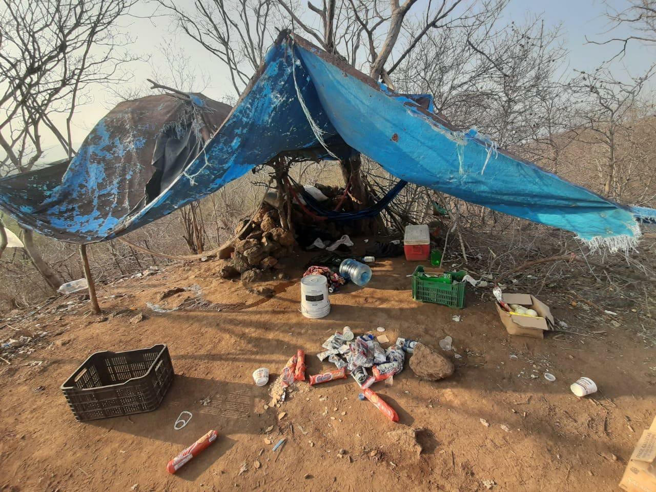 Aguililla, Michoacán, a 14 de junio de 2020.- Resultado de un operativo interinstitucional, elementos de las secretarías de Seguridad Pública (SSP), y de la Defensa Nacional (SEDENA), destruyeron un campamento y aseguraron dos fusiles, cargadores y más de 800 cartuchos útiles, en este municipio.
