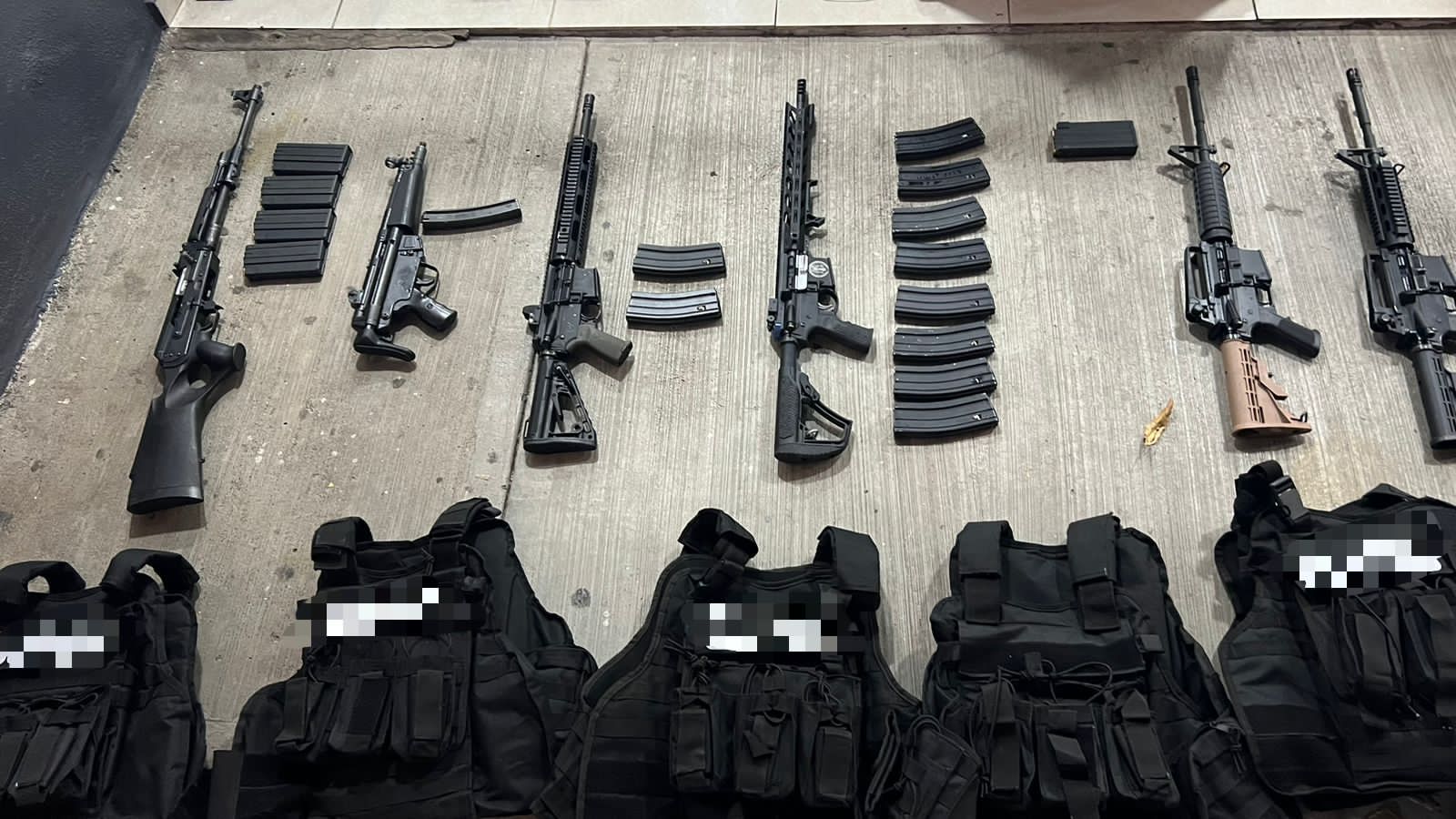 Posteriormente, en otra acción registrada en la colonia Peña Blanca, al sur de la ciudad, los uniformados realizaron la detención de dos hombres más, a quienes les fueron decomisadas seis armas largas, ocho artefactos explosivos, cargadores y chalecos balísticos; los ahora indiciados se encontraban en un vehículo marca Acura.