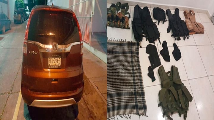 La camioneta Honda era ocupada por cinco personas que portaban armas de fuego largas y chalecos tácticos, mientras que en el segundo vehículo viajaban dos personas, una de ellas con un arma de fuego.