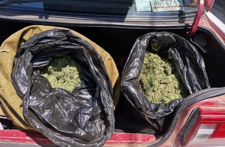 Detiene SSP a dos en posesión de 7.4 kilos de marihuana, en Coeneo