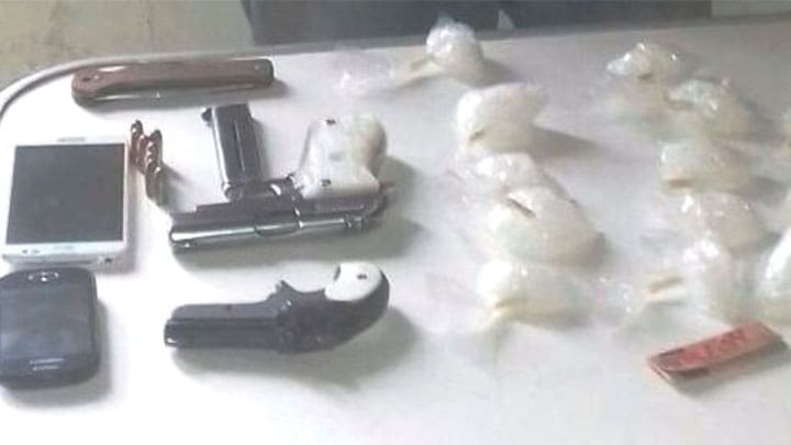 También se le encontraron 15 envoltorios con metanfetamina, dos teléfonos celulares, una navaja y una pipa de cristal, que fueron embalados como parte de la acción policial.