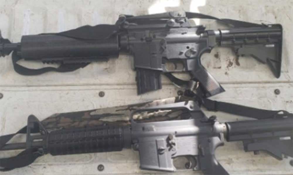 En la inspección de uno de los respaldos del vehículo, los policías encontraron un arma larga, tipo AR15, calibre .223 con un cargador abastecido con 10 municiones, así como una de balines, AR15 sin placas de circulación.
