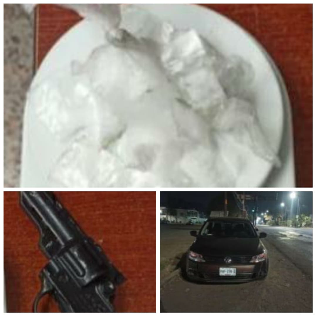 Al realizar una inspección, a los implicados les fue asegurada un arma de fuego calibre .22 mm., así como una bolsa que contenía la citada sustancia.