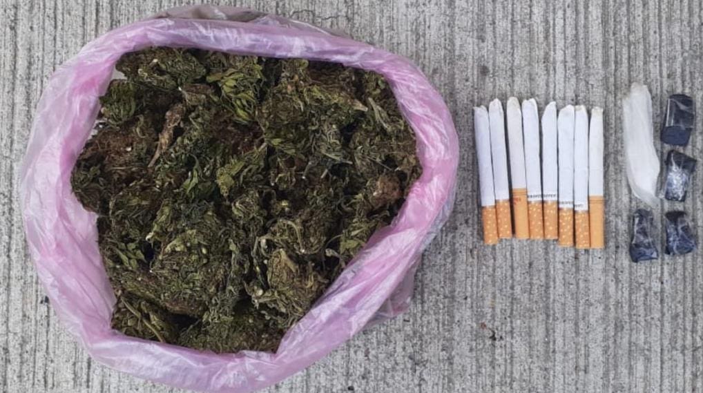 Zitácuaro, Michoacán, a 10 de octubre de 2019.- En recorrido para la disuasión del delito, personal de la Secretaría de Seguridad Pública (SSP), detuvo a una persona en posesión de 200 gramos de hierba verde seca, con las características de la marihuana, y varios envoltorios con sustancia granulosa, al parecer metanfetamina.