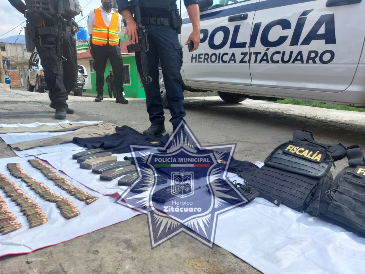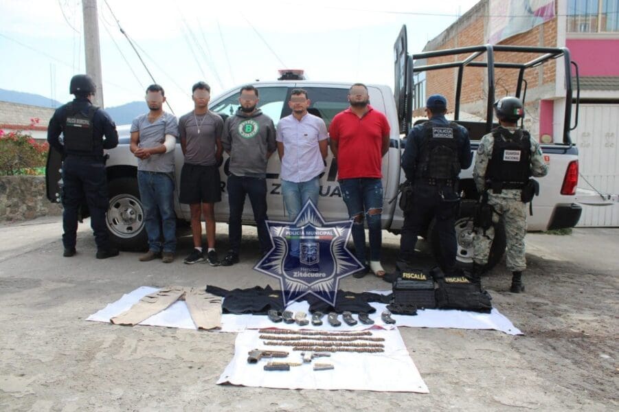 Así lo señaló el Secretario de Seguridad Pública Municipal Comisario Carlos Fernando Chico Álvarez, quien agregó que en operativo conjunto con elementos a su mando, Guardia Nacional y Policía Estatal Michoacán llevaron a cabo la detención de cinco personas del sexo masculino, armas, cartuchos, cargadores, uniformes y dos vehículos.