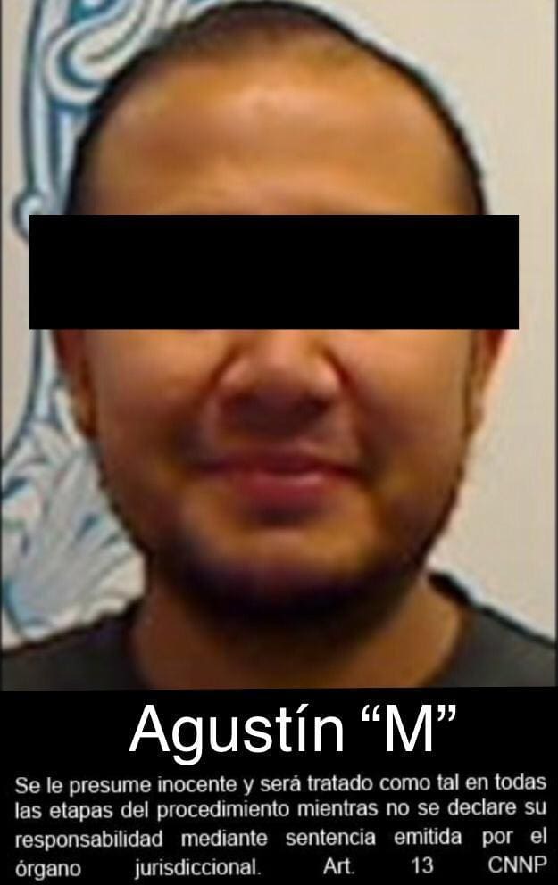 Al dar cumplimiento al mandamiento, otorgado por un Juez de Control del Centro Nacional de Justicia Especializado en Control de Técnicas de Investigación, Arraigo e Intervenciones de Comunicaciones en la Ciudad de México, policías federales ministeriales (PFM), encabezados por el Ministerio Público Federal (MPF), detuvieron a Agustín “M”, sin uso de violencia ni afectación a terceros, con pleno respeto a sus derechos humanos.