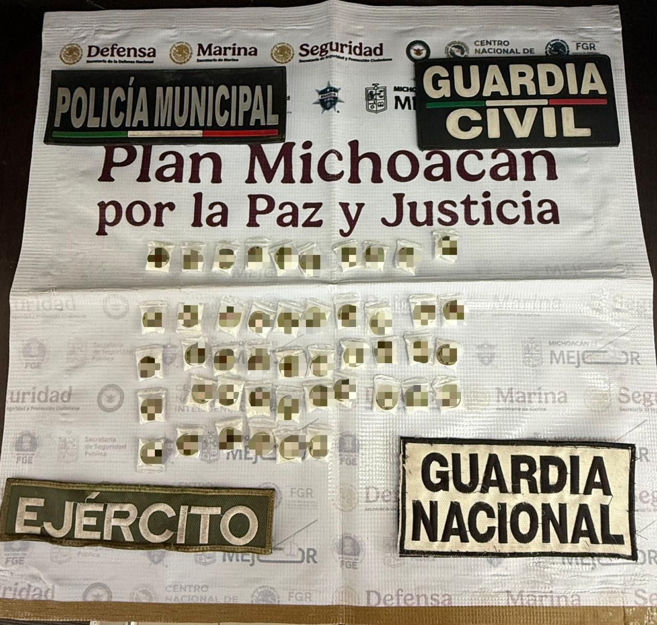 En la colonia El Sabinito, en Zamora, integrantes de la Guardia Civil, el Ejército Mexicano, la Guardia Nacional y la Policía Municipal reportaron la captura de un individuo. De acuerdo con el informe oficial de la dependencia, el sujeto se encontraba en posesión de 46 envoltorios de una sustancia con características de metanfetamina y una motocicleta marca Italika. La SSP señaló que al detenido se le relaciona con la probable comisión de delitos como extorsión y homicidio.