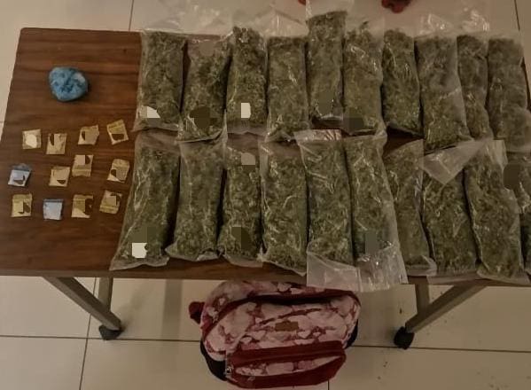 En seguimiento a estos hechos, sobre la calle Ferrocarril en la colonia Gutiérrez Flores, se efectuó el aseguramiento de dos masculinos, que se encontraban en posesión de 398 gramos de marihuana, 12 envoltorios con la citada sustancia ilícita y una motocicleta de la marca Italika.